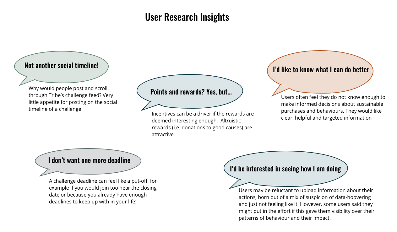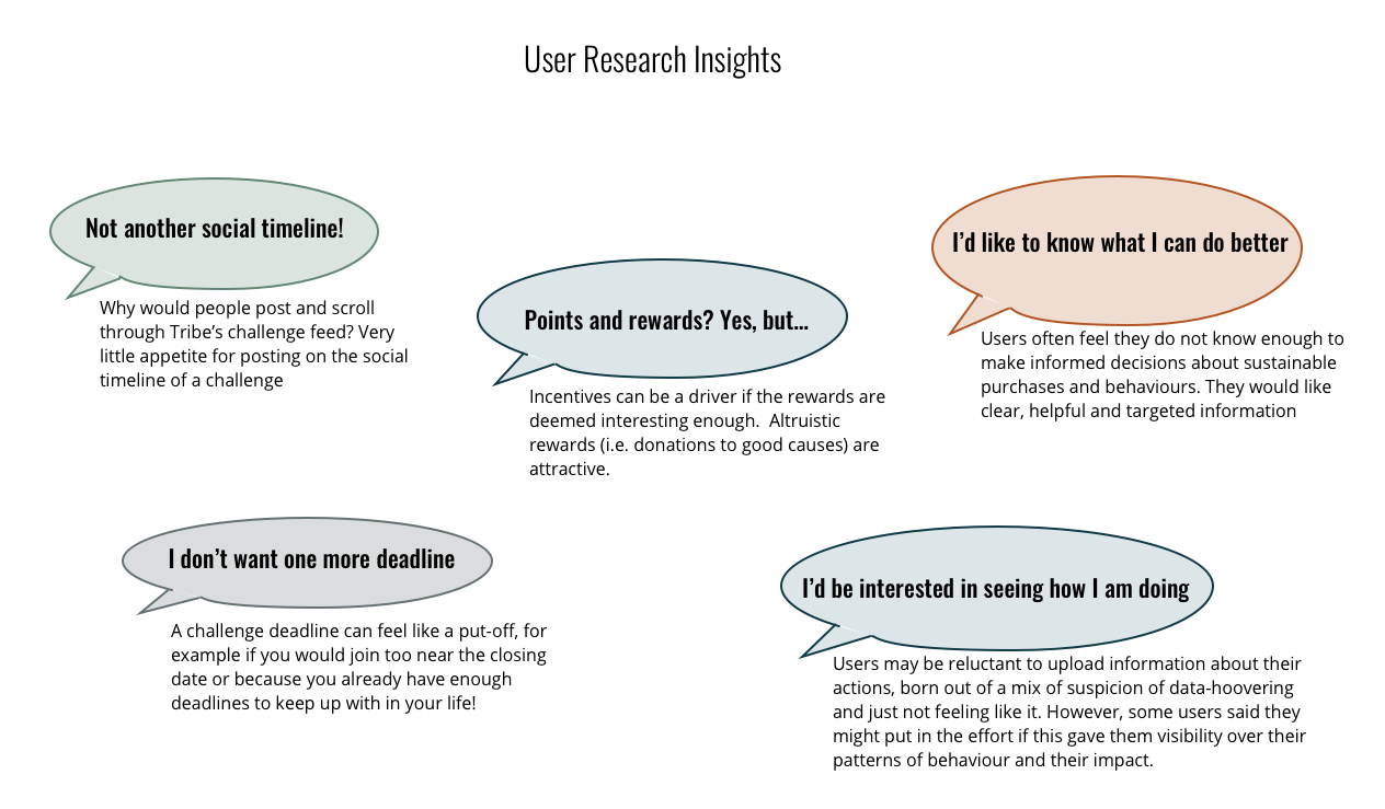 The interviews pushed us to rethink some of our assumptions, but also confirmed a fundamental alignment between Tribe's business goals and some user goals.